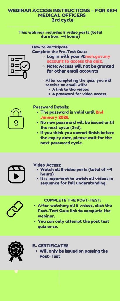 ! Log in to your moh.gov.my email to answer the pre-test quiz and proceed with the webinar.