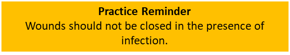 Delayed primary closure may be considered once the wound is clean, infection has resolved, wound can be oppose without tension and healthy granulation tissue is present.